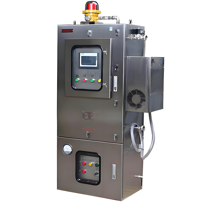 防爆正压柜通过控制系统与气路系统的配合,将来自安全区域的保护气体引入正压腔内。这种气体对正压腔内的可燃性气体进行清洗和置换,使正压腔内保持一定的压力,从而阻止外部危险环境中的可燃性气体和导电性粉尘进入。这种设计的主要目的是将可燃性物质与点燃源隔离,以达到防爆的目的。